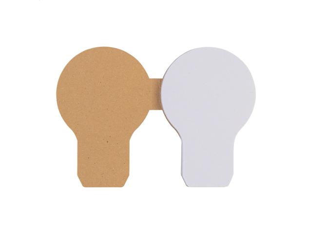 Custom made, recycled kraft paper covered light bulb shaped sticky notepad. Includes 50 sheets of recycled paper sticky notes. Price includes full colour printed outside cover. MOQ: 100 pcs.