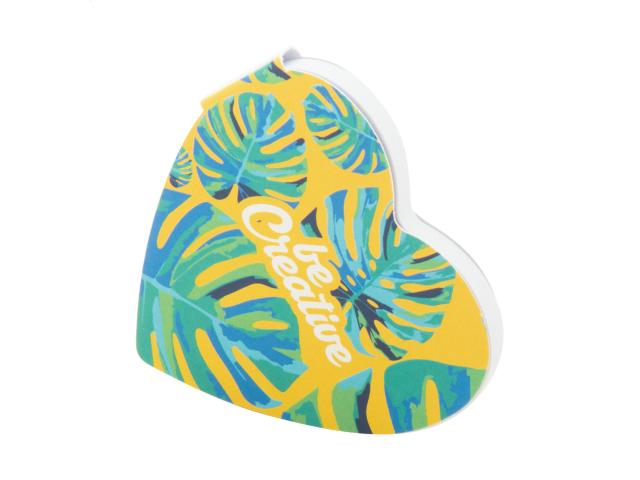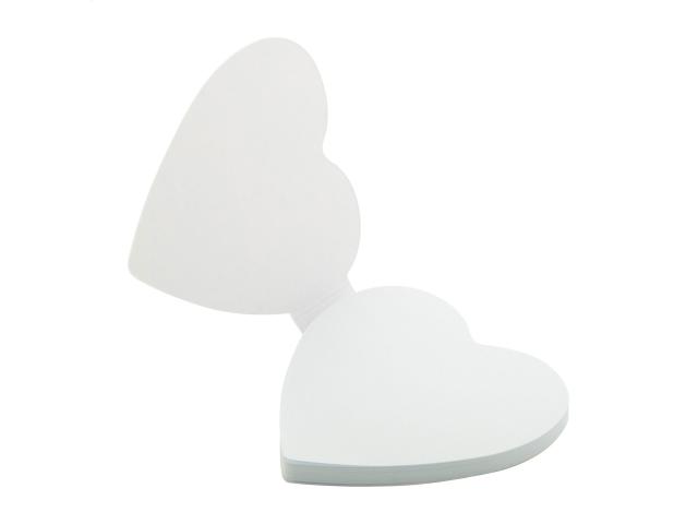 Custom made, paper covered heart shaped sticky notepad. Includes 50 sheets of recycled paper sticky notes. Price includes full colour printed outside cover. MOQ: 100 pcs.