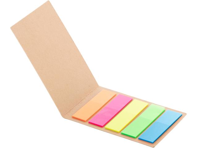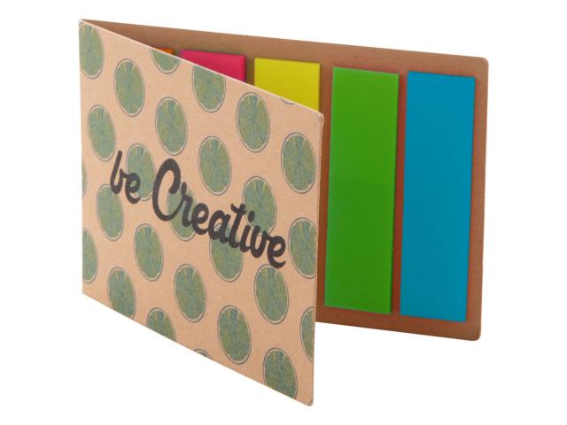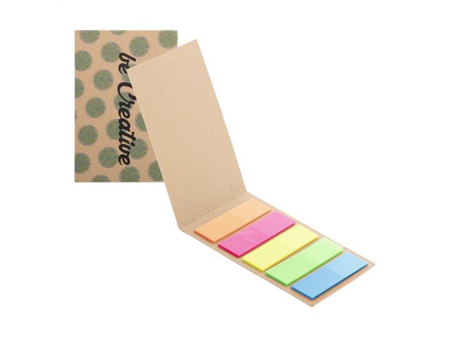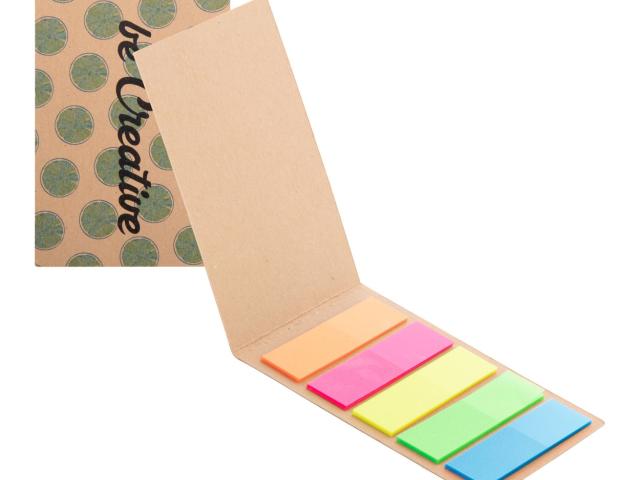 Custom made, recycled kraft paper covered page markers. Includes 100 plastic film page markers in 5 assorted colours (44×12 mm). Price includes full colour printed outside cover. MOQ: 100 pcs.