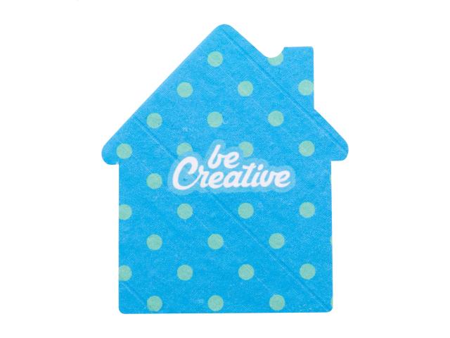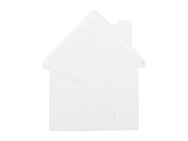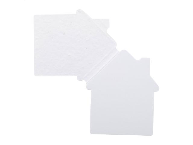 Custom made, seed paper covered house-shaped sticky notepad. Includes 50 sheets of recycled paper sticky notes. Price includes full colour printed outside cover. MOQ: 100 pcs. With assorted wildflower seeds.