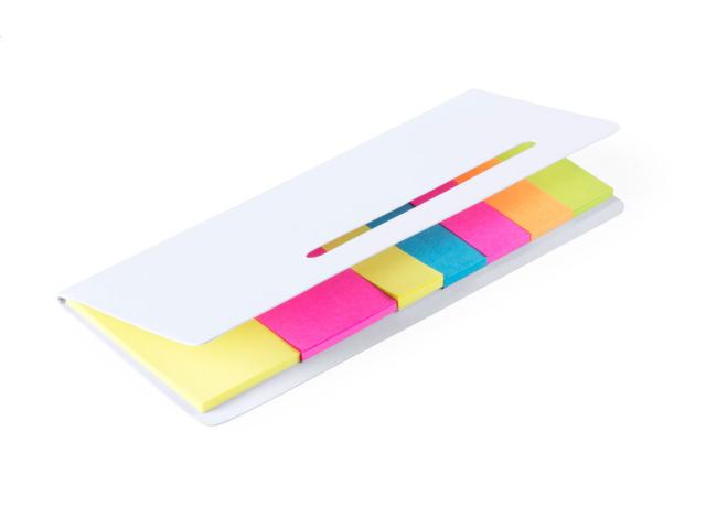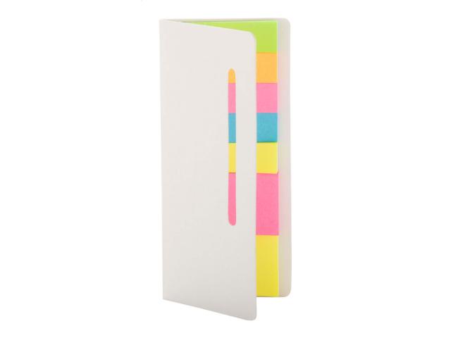 Paper covered sticky notepad with 2 sizes (2×20 medium and 5×20 small).