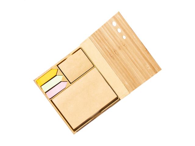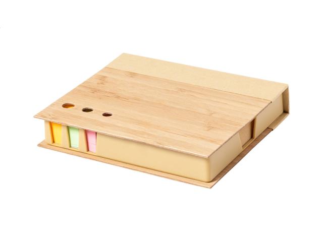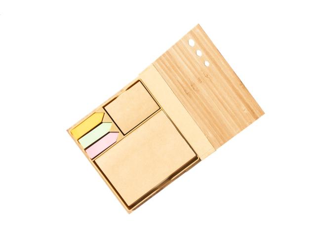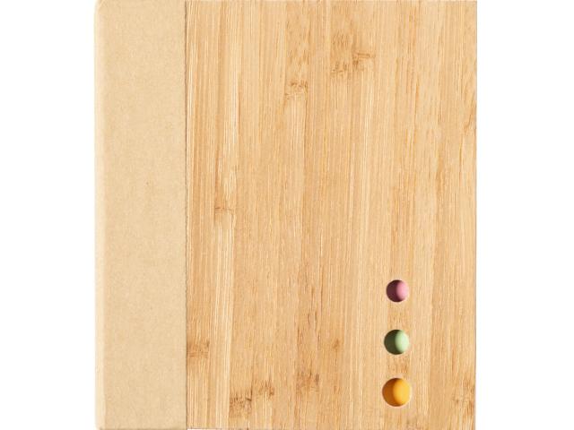 Bamboo covered recycled paper sticky notepad with 115 large and 115 medium notes and 420 page markers (in 3 different colours).