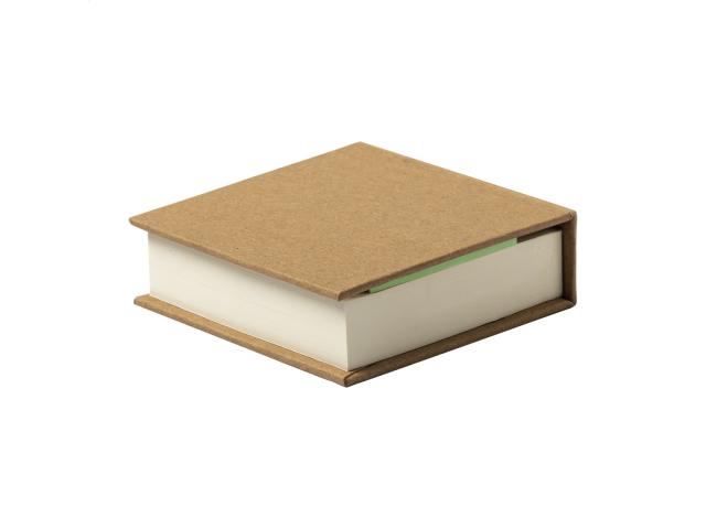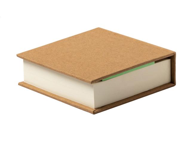 Recycled cardboard covered notepad with 200 sheets and 125 page markers in 5 colours.