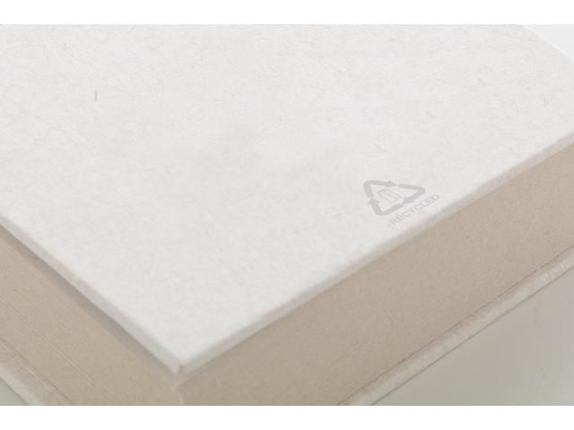 Recycled milk carton paper notepad with 200 sheet memo block.