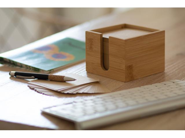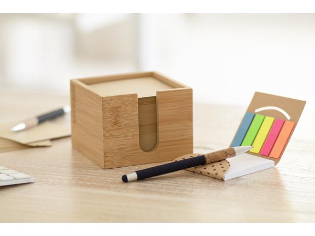 Bamboo note dispenser with 600 sheets memo block in recycled paper (80 gr/m²).