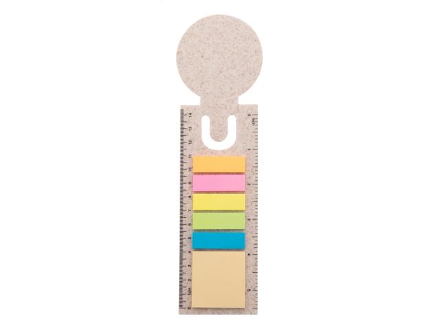 Ecological wheat straw plastic bookmark and ruler with 25 sticky notes and 125 page markers (in 5 different colours).