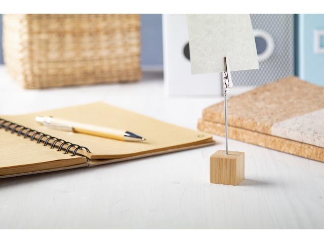 Bamboo note clip with metal clip.