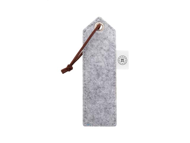 Custom made, RPET felt bookmark with full colour printed front side and PU leather string. With distinctive RPET label. Price includes sublimation printing. MOQ: 100 pcs.