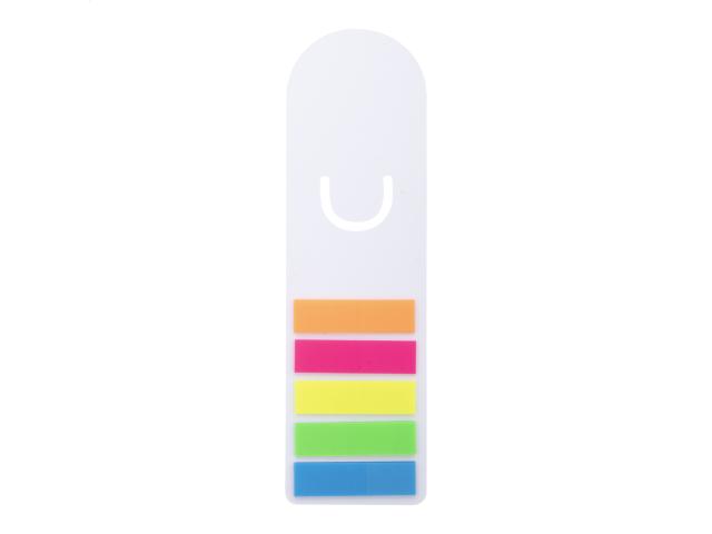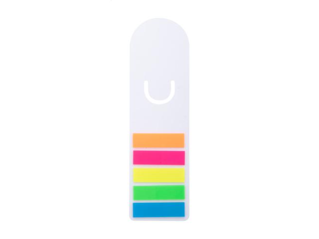 Custom made, paper bookmark with page markers. Includes 100 plastic film page markers in 5 assorted colours (44×12 mm). Price includes full colour printing on front side. MOQ: 100 pcs.