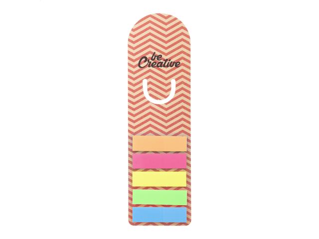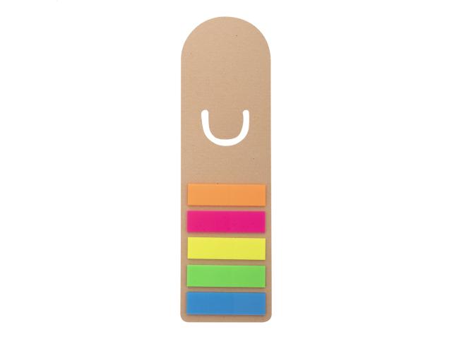 Custom made, recycled kraft paper bookmark with page markers. Includes 100 plastic film page markers in 5 assorted colours (44×12 mm). Price includes full colour printing on front side. MOQ: 100 pcs.