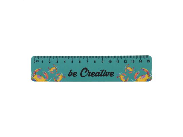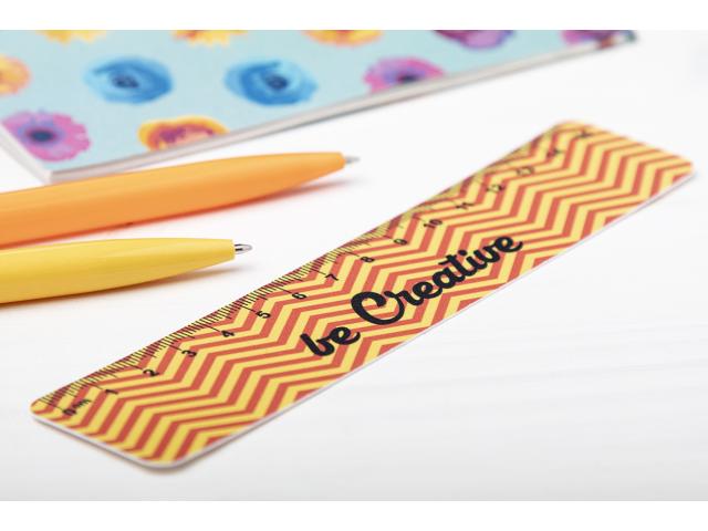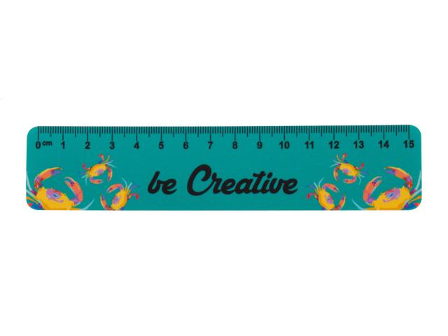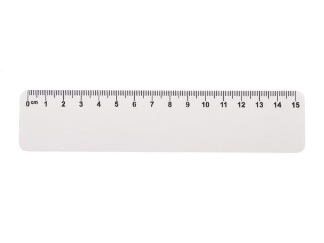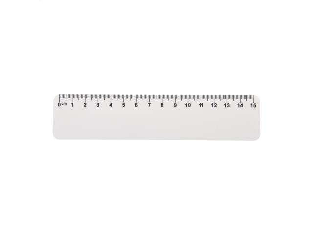 15 cm flexible plastic ruler with custom graphics. Price includes UV LED printing on one side. MOQ: 100 pcs.