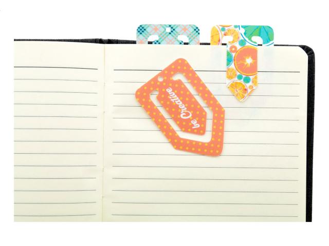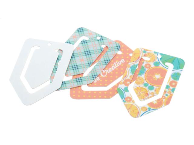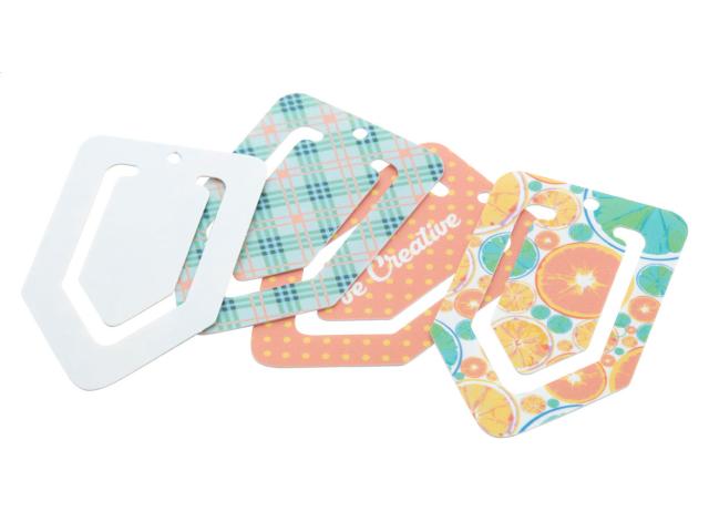 Plastic paper clip bookmark with custom graphics. Price includes UV LED printing on one side. MOQ: 250 pcs.