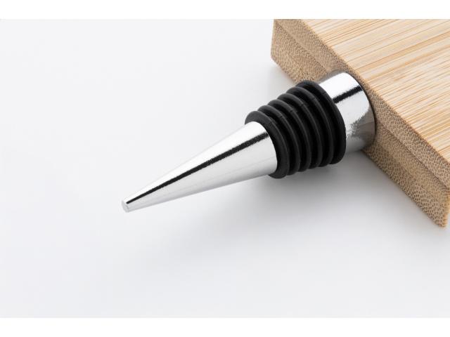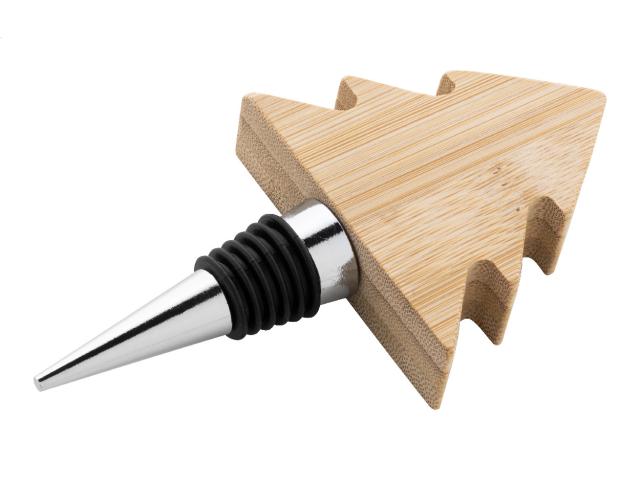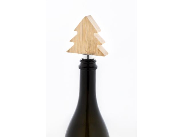 Metal wine stopper with bamboo Christmas tree shaped decoration.