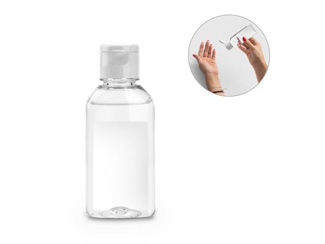 Sprej za čišćenje ruku na bazi alkohola u PET boci od 50 mL s čepom. Praktičan kozmetički proizvod koji možete ponijeti i koristiti bilo gdje. Ø33 x 84 mm