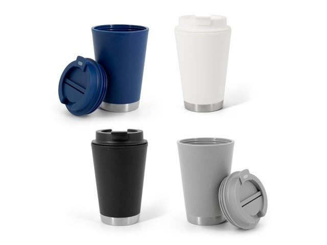 Dvostruko izolirana putna šalica od PP plastike, nepropusna. Poklopac s preklopnim zatvaranjem za sigurnost pića. Kapacitet do 410 mL. ø90 x 145 mm