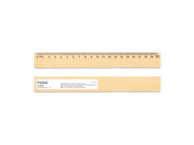 Ravnalo od borovine s podjelom od 20 cm, ispisano crnom bojom. Budući da je proizvod izrađen od prirodnih materijala, boja te rezultat ispisa mogu se razlikovati od proizvoda do proizvoda. 209 x 25 mm