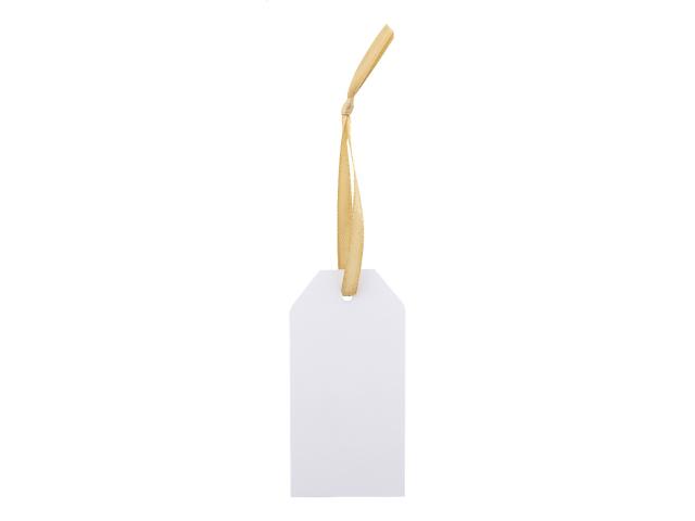 Custom made, full colour printed paper Christmas gift tag with golden ribbon. Price includes digital printing on one side. MOQ: 100 pcs.
