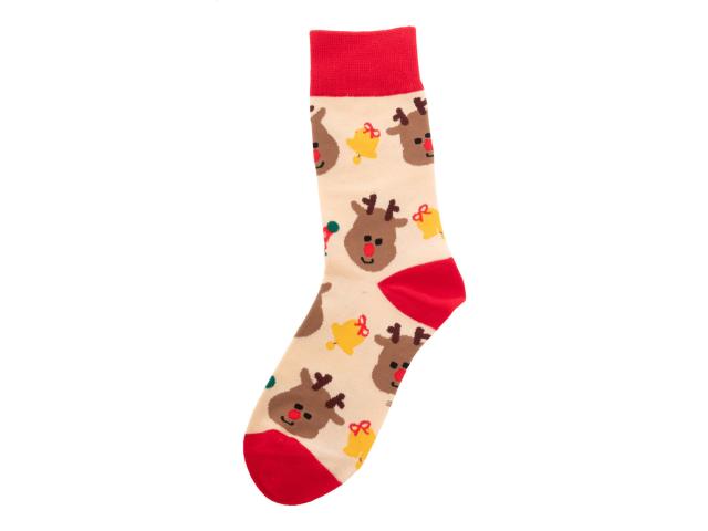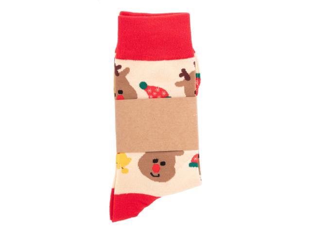 Pair of Christmas socks in 73% cotton, 25% RPET polyester and 2% spandex. With printable kraft paper wrap.