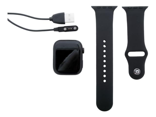 Multifunctional wireless smart watch in metal housing with 1,85" TFT touch screen, 180 mAh rechargeable battery and silicone strap. It has several health monitoring and smart features, such as heart rate, blood pressure and oxygen monitor besides many others. Can be connected to smartphones with a free app available for iOS and Android. Including magnetic USB charger cable.