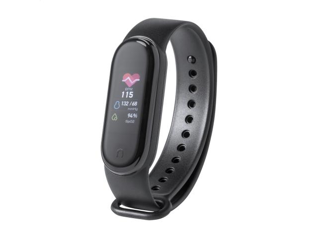 Multilingual, wireless smart watch with 0,96" TFT screen and TPU strap. With heart rate, blood pressure and blood oxygen monitor functions. Including USB charger cable.