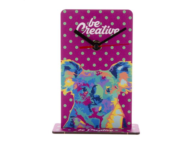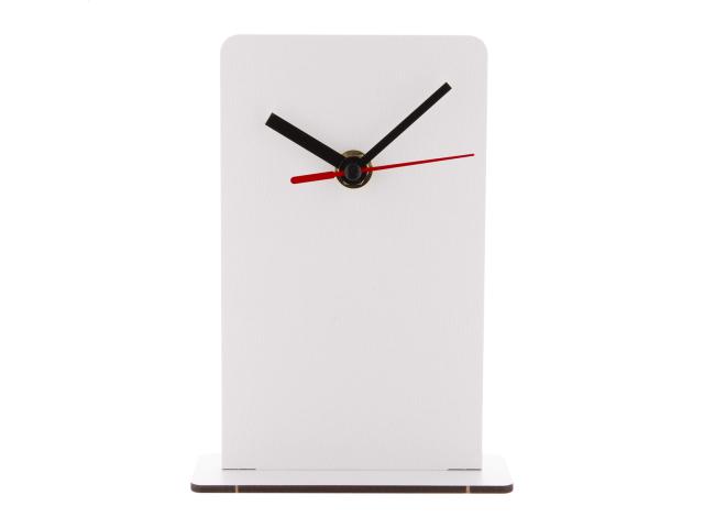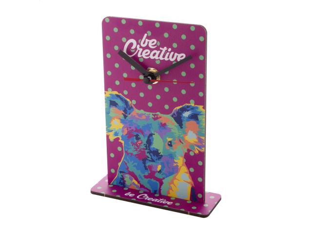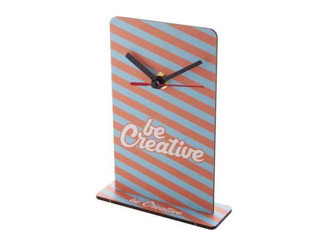Custom made, HDF wood table clock with custom graphic. Operates with 1 AA battery, without battery. MOQ: 50 pcs.