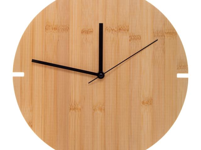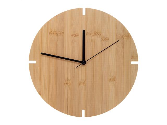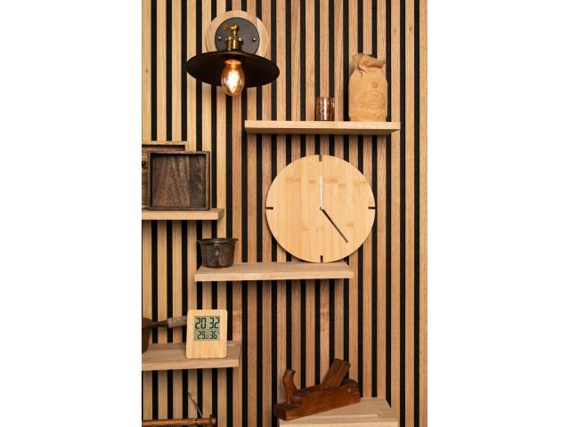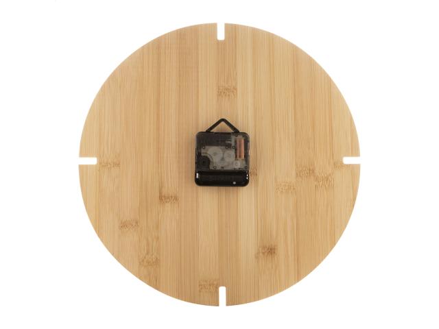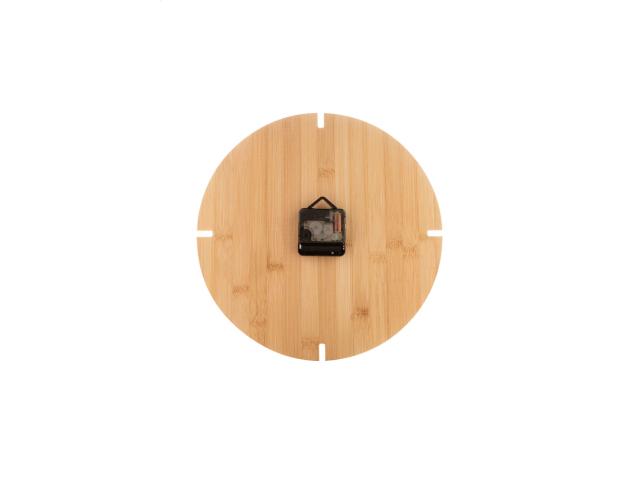 Round bamboo wall clock. Operates with 1 AA battery, without battery.