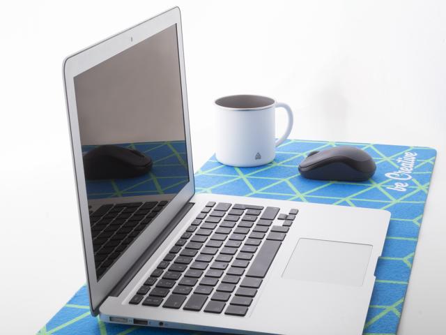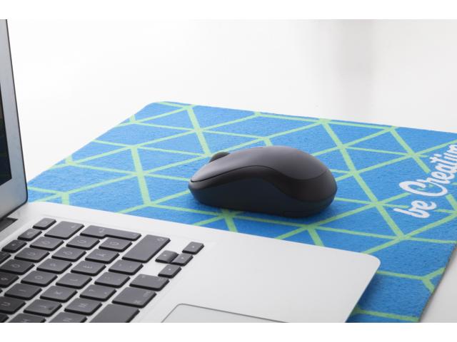 Custom made, RPET felt desk mat mouse pad with rubber anti-slip base. Price includes sublimation printing. MOQ: 50 pcs.