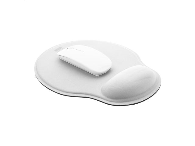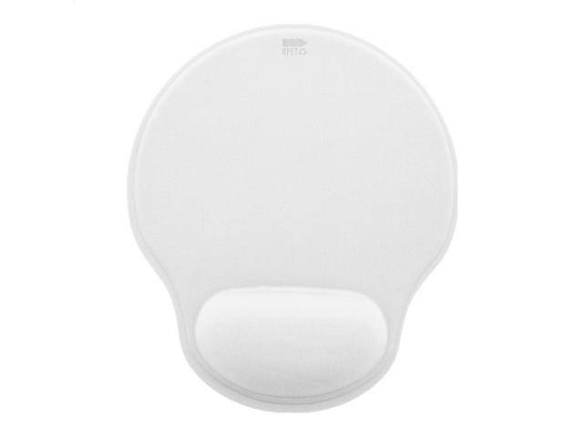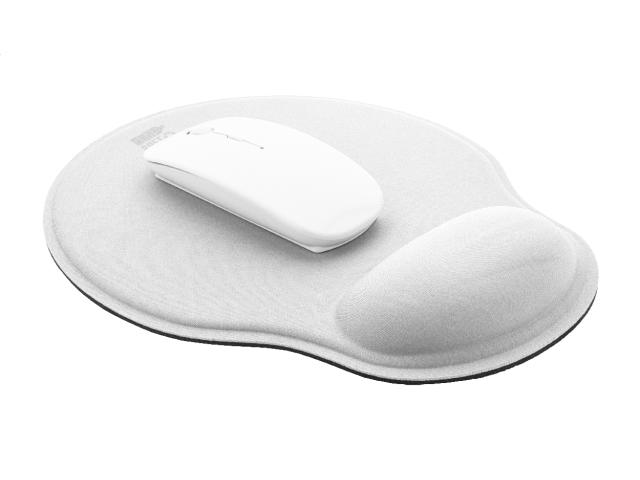 RPET mouse pad with ergonomic wrist rest and rubber anti-slip base.