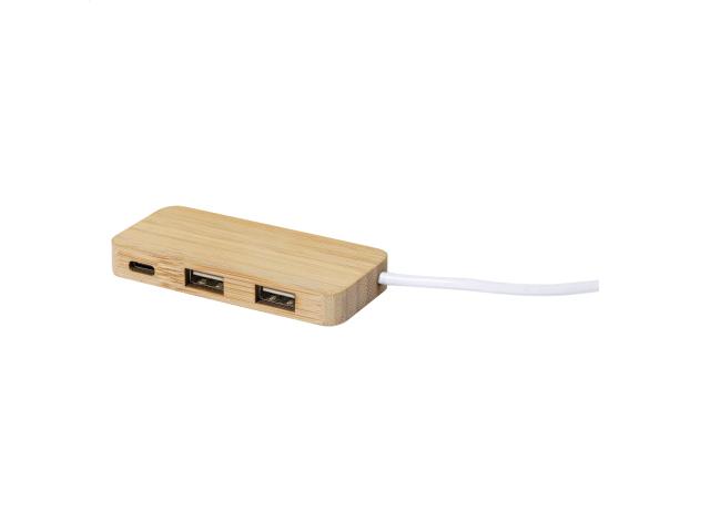 Bamboo USB hub with 2 USB and 1 USB-C ports, USB 2.0.