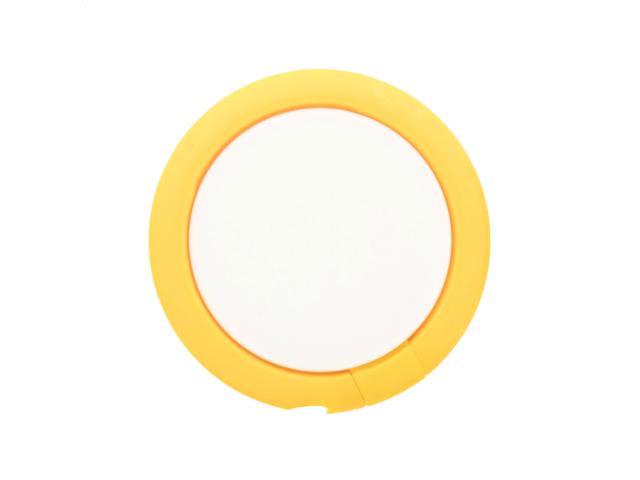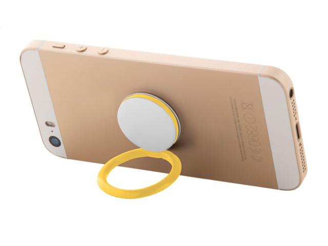 Round shaped, plastic mobile holder ring with self-adhesive base.