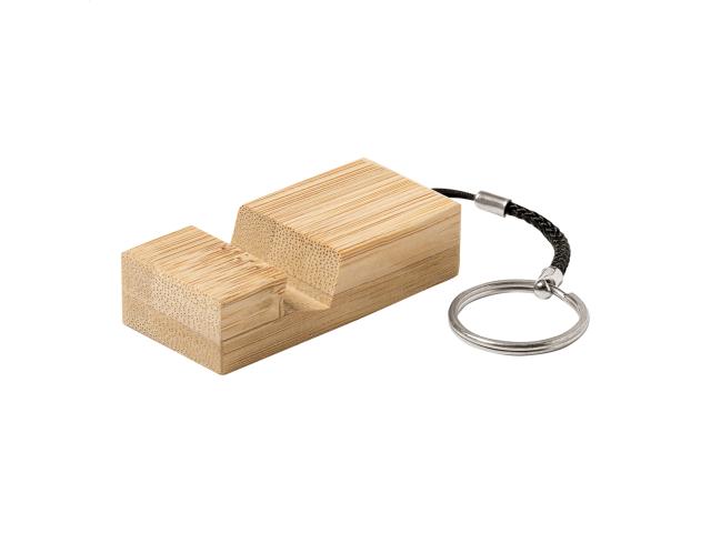 Mobile holder keyring in bamboo with metal ring.