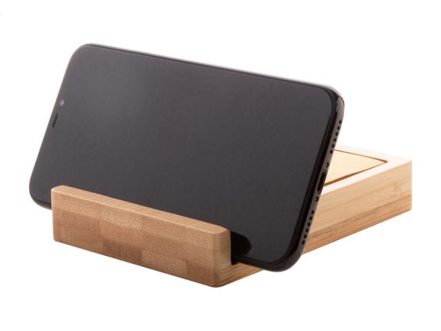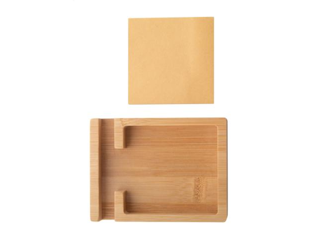 Bamboo mobile phone holder with 125 sheets recycled kraft paper notepad (75×75 mm).