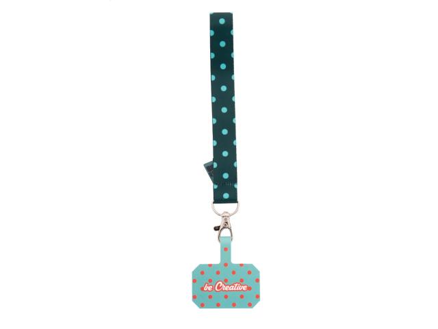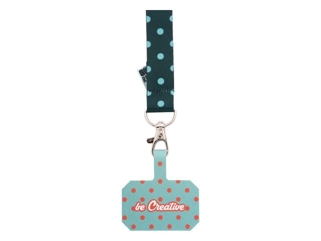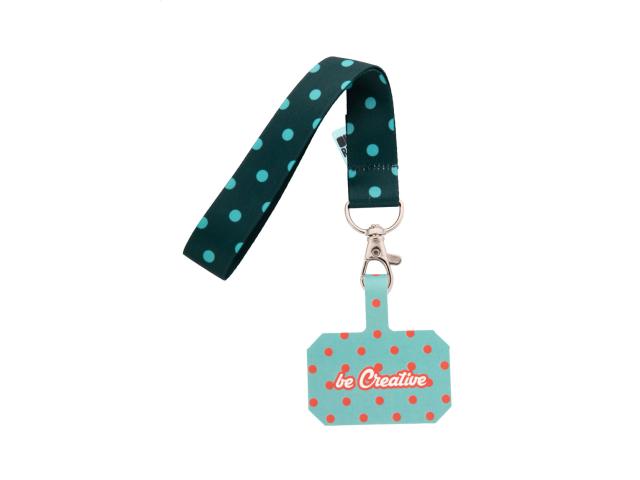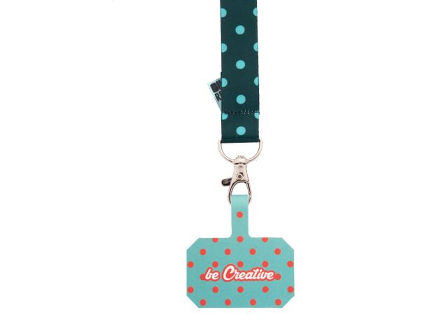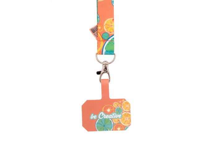 Custom made, RPET mobile holder wrist strap with metal carabiner and full colour printed phone insert in tearproof paper. With sublimation printed graphics on both sides. MOQ: 100 pcs.