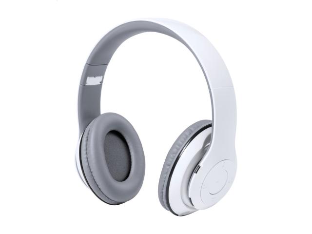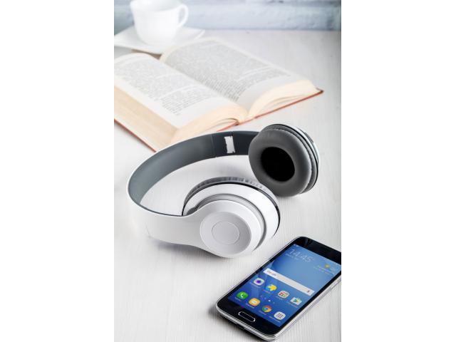 Foldable, plastic wireless headphones with built-in rechargeable battery. With hands-free call and micro SD MP3 playback functions. Including 3,5 mm audio Jack and USB charger cables.