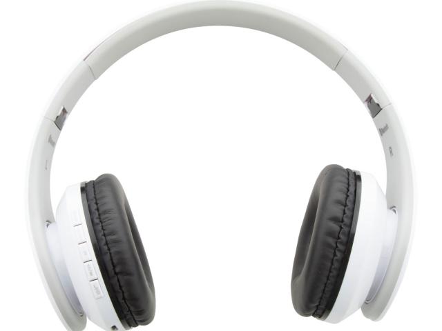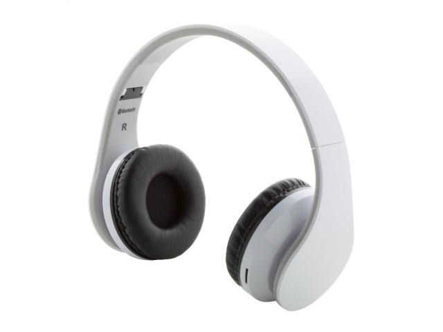 Foldable, plastic wireless headphones with built-in rechargeable battery. With hands-free call and micro SD MP3 playback functions. Including 3,5 mm audio jack and USB charger cables.