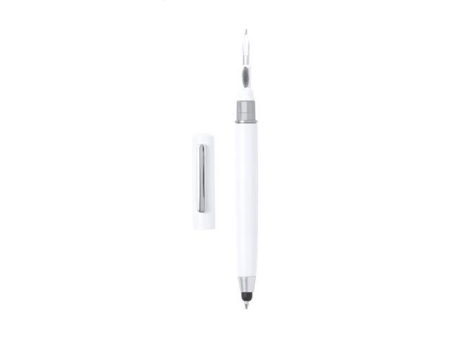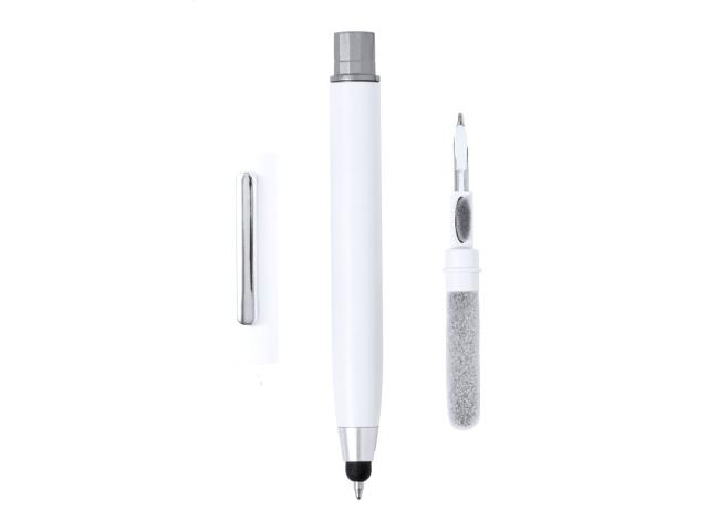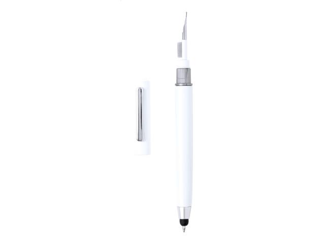 ABS plastic twist ballpoint and touch screen pen with built-in earphone cleaning kit. With blue refill.