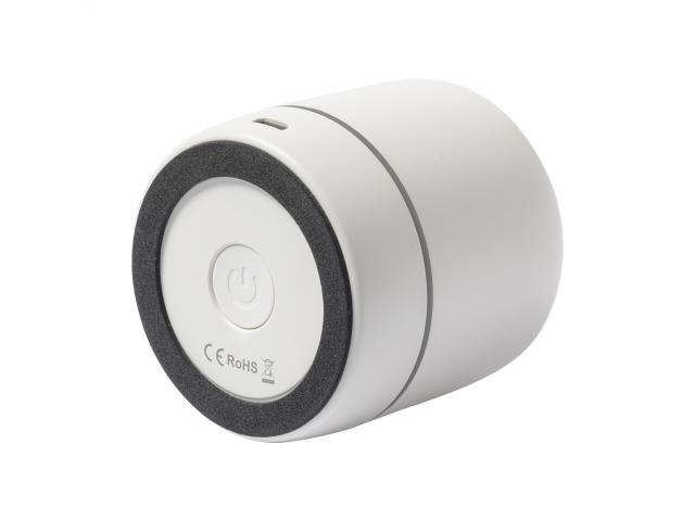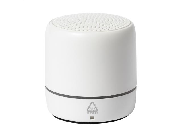 Recycled ABS wireless speaker with hands-free call function and built-in rechargeable battery. Including USB charger cable.