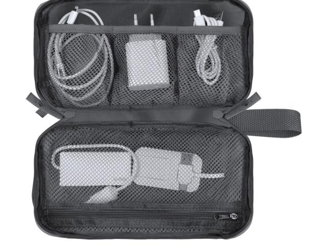 RPET polyester zipped cable organizer case. 900D RPET polyester with distintive RPET label.
