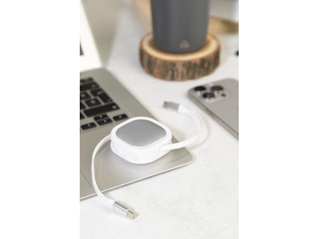 Telescopic USB-C to USB-C charger cable in recycled ABS and recycled aluminium. Supporting 60W PD fast charging.