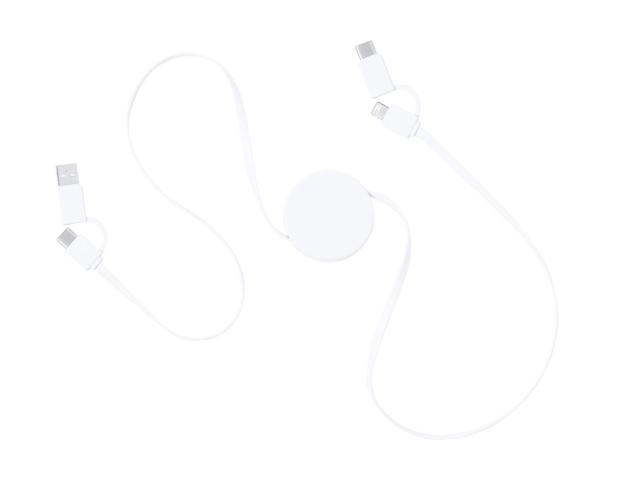Telescopic USB charger cable in ABS plastic with micro USB, USB-C and Lightning connectors. With USB and USB-C inputs.
