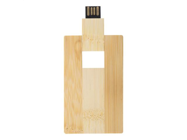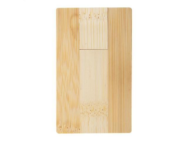 Credit card-shaped, bamboo USB flash drive. Capacity: 8/16/32GB. USB 2.0.