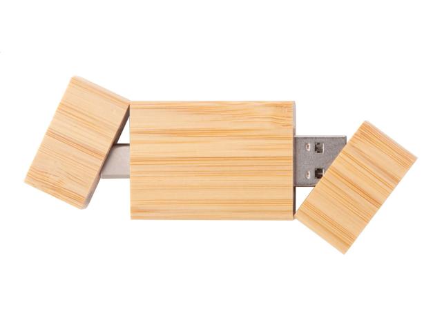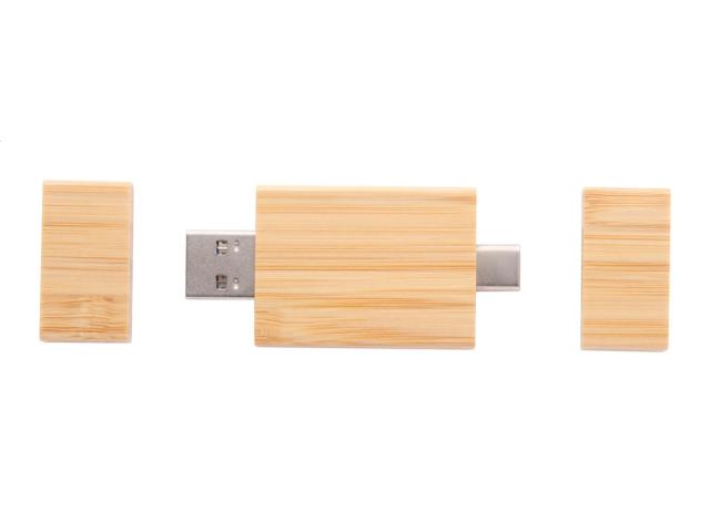 OTG USB flash drive in bamboo housing with 4/8/16/32 GB memory. With USB and USB-C connections. In kraft paper bag. USB 2.0.