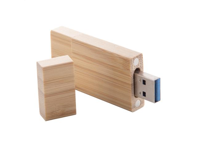 OTG USB flash drive in bamboo housing with 8/16/32 GB memory. With USB and USB-C connections. In kraft paper bag. USB 2.0.