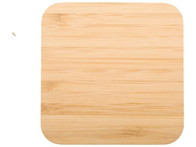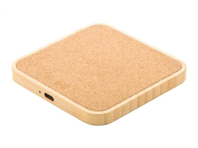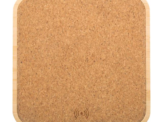 Bamboo and natural cork wireless fast charger (15W). Including USB charger cable.