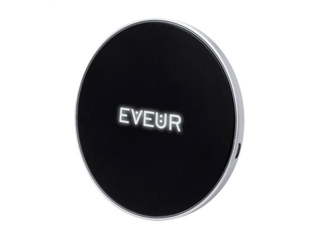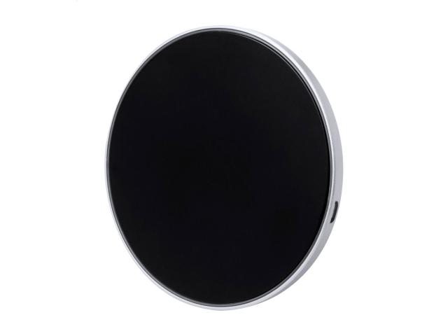 Wireless charger (5W) with plastic housing and LED light inside the housing for illuminated engraving. Including USB charger cable.