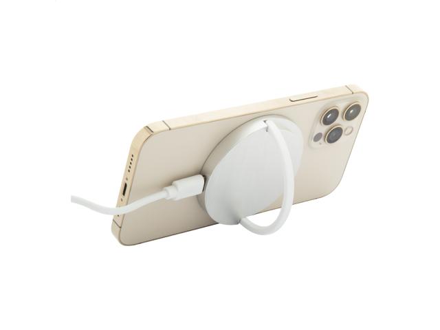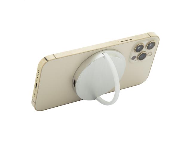 Magnetic wireless fast charger (15W) with mobile holder ring in recycled aluminium and recycled ABS plastic housing. Compatible with iPhone® 12 or newer. Including USB-C charger cable.