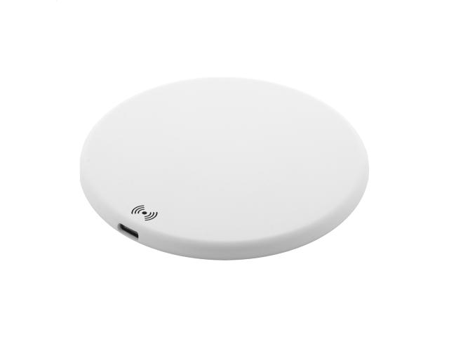 Recycled ABS plastic fast wireless charger (15W). Including USB charger cable.