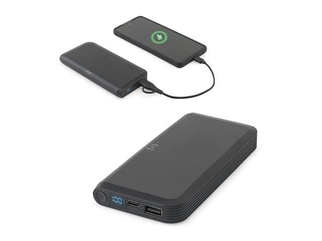 Power bank s ekskluzivnim dizajnom, superbrzim bežičnim punjenjem i integriranim LED zaslonom koji prikazuje razinu napunjenosti, omogućujući vam da uvijek budete spremni i nikad ne napustite dom bez baterije. Dizajniran s posebnom pažnjom na detalje, velika površina za tisak i teksturirani detalji sa strane daju mu premium izgled.Materijal: Reciklirani ABS (100% rABS)Kapacitet: 10’000 mAhSnaga bežičnog punjenja: 15WUlaz: USB-C (PD 18W)Izlaz: USB-C (PD 20W), USB-A (QC 18W)Uključuje: USB-C/USB-C kabel s USB-A adapteromZnačajke: omogućuje punjenje 3 uređaja istovremenoPakiranje: poklon kutija od recikliranog kraft papira 141 x 69 x 17 mm | Kutija: 146 x 95 x 20 mm