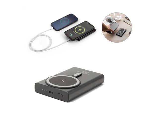 Magnetni power bank sa super brzim punjenjem i 4 LED diode koje pokazuju razinu baterije. Bežično mjesto za punjenje ima uzdignuto magnetsko područje koje se prilagođava većini pametnih telefona. Budući da je proizvod izrađen od prirodnih materijala, boja te rezultat ispisa mogu se razlikovati od proizvoda do proizvoda.Materijal: ABS (7 % reciklirani), aluminij (21 % reciklirani)Kapacitet: 10’000 mAhBežična snaga punjenja: 15 WUlaz: USB-C (18 W)Izlaz: USB-C (PD 20 W)Uključuje: dodatni magnetski držač, USB-C/USB-C kabel s USB-A adapteromZnačajke: omogućuje istovremeno punjenje 2 uređajaKompatibilnost: iPhone 12 i noviji, uređaji s magnetskom tehnologijom (npr. Magsafe ili s magnetskim držačem)Pakiranje: poklon kutija od recikliranog kraft papiraDimenzije: 106 x 67 x 19 mm