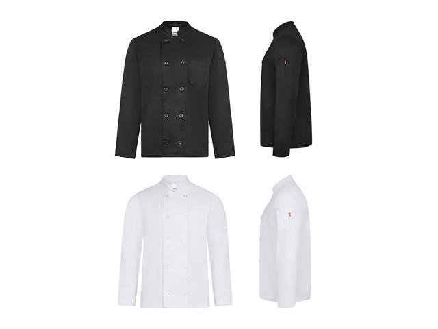 Kuhinjska jakna s dugim rukavima (190 g/m²) izrađena od pamuka (35%) i poliestera (65%).S dvostrukim kopčanjem na gumbe i dva džepa (1 na prsima i 1 na lijevom rukavu). Veličina: XS, S, M, L, XL, 2XL, 3XL, 4XL, 5XL